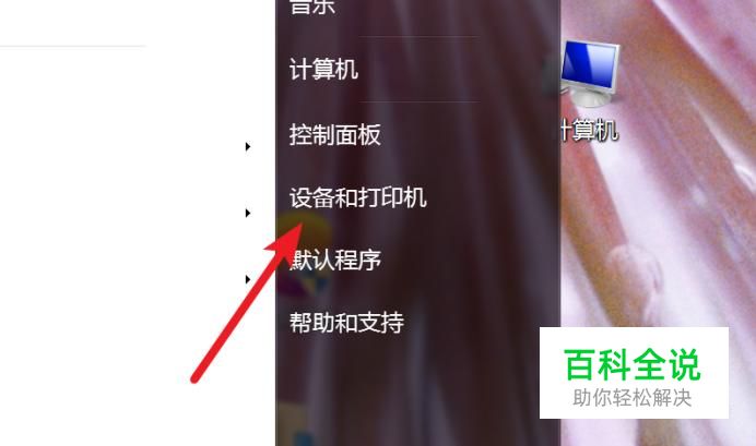 点击开始菜单上的‘设备和打印机’