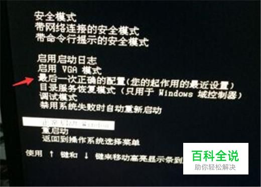 如果重启没用的话,我们将电脑关机,然后再开机,立马按下F8键,就会进入Windows 高级选项菜单,选择“最后一次正确的配置”。