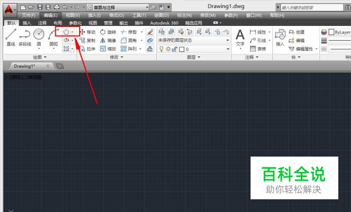打开CAD软件,上方出现功能界面,选择“多边形”。