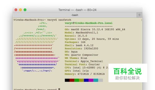 如何使用neofetch? 打开终端应用程序并键入命令:来自macOS的示例输出: $ neofetch$ neofetch options$ neofetch --config off --bold off --colors 4 1 8 8 8 7