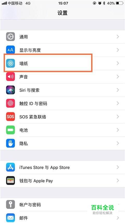 然后点击墙纸,如下图所示。