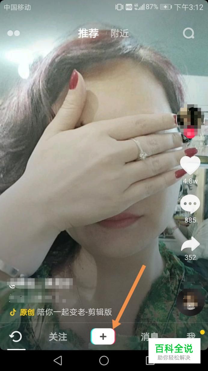 首先打开抖音短视频APP,点击中间的“+”号,如下图。