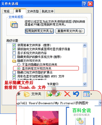 为什么我会经常看到 Thumb.db 的文件 如果你在查看图片的时候,使用了“缩略图”视图,或者以幻灯片方式,那么就会在那个图片的文件下产生一 Thumb.db 的文件。这个文件是隐藏的(系统用来缓存你浏览过的缩略图)。