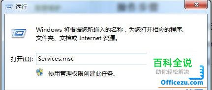 按键盘组合键“Win+R”打开“运行”输入“Services.msc”确定。