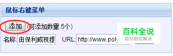 自定义右键菜单设置 左侧功能列表的视频管理 — 点击播放器设置 — 右侧的播放器属性 — 点击修改已有播放器(或添加) — 鼠标右键菜单,界面如下图:自定义播放器右键菜单的显示内容以及跳转地址;