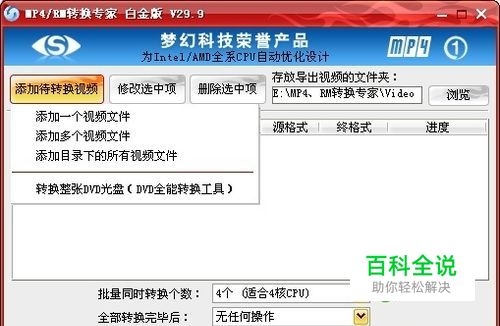 将电影导入软件中 在软件主界面上,点击左上角的“添加待转换视频”按钮,软件支持添加单个视频、多个视频和目录下所有视频等多种添加方式,在设计上非常人性化。