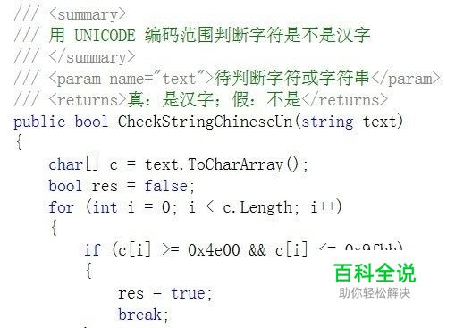 判断一个字符是不是汉字通常有三种方法,第1种用 ASCII 码判断,第2种用汉字的 UNICODE 编码范围判 断,第3种用正则表达式判断,下面是具体方法。 1、用ASCII码判断 在 ASCII码表中,英文的范围是0-127,而汉字则是大于127,根据这个范围可以判断,具体代码如下: 调用方法:CheckStringChinese("是不是汉字"); 2、用汉字的 UNICODE 编码范围判断 汉字的 UNICODE 编码范围是4e00-9fbb,根据此范围也可 以判断,具体代码如下: 调用方法:CheckStringChineseUn("是不是汉字"); 3、用正则表达式判断 用正则表达式判断也是根据汉字的 UNICODE 编码范围判断的,具体代码如下: 调用方法:CheckStringChineseReg("是不是汉字");