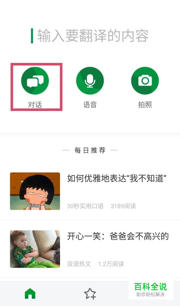 打开搜狗翻译后,在界面左上角可以找到【对话】功能。