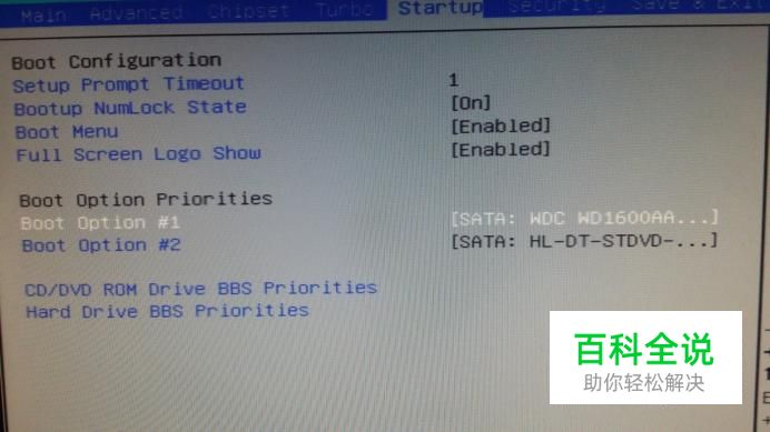 首先开机按DEL键进入BIOS,选择“Startup”菜单下的“第一启动选项”中设置为光驱。