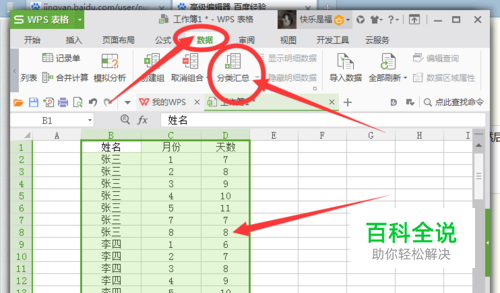 WPS表格如何快速提取单元格分类汇总数据