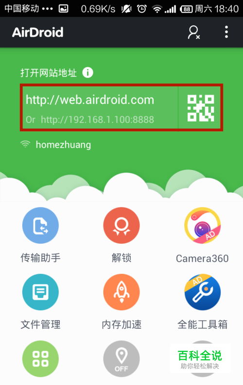 在手机上安装AirDroid软件,并且打开,记住首页的网址