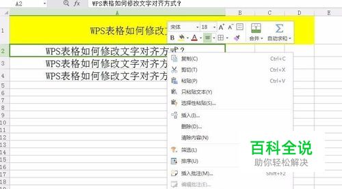 在WPS表格中,如何修改单元格内文字对齐方式?