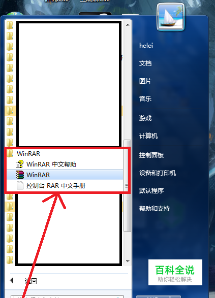 在开始菜单的所有程序中找到WinRAR,打开该软件。