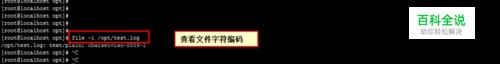 最后我们验证转化后的test1.log的字符编码。我们执行命令"file -i /opt/test1.log"查看字符编码,可以看到已经转化为utf-8了。