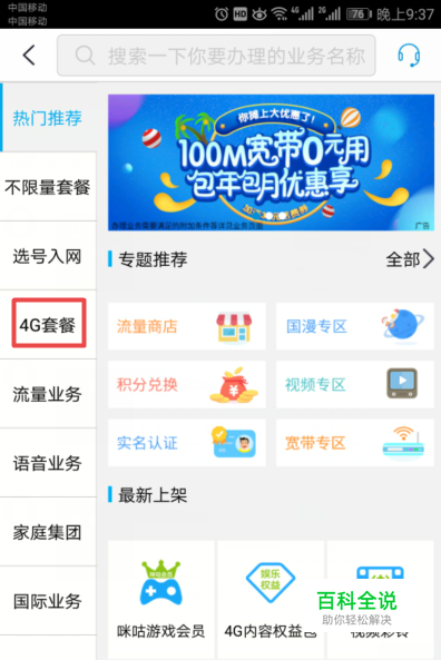 弹出的界面,我们点击4G套餐;