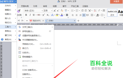 我们可以设置关闭自动保存或者定时备份,首先打开wps文字。点击左上角的小箭头,在下拉菜单中选择工具。