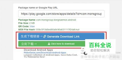 一键下载Google Play市场APK文件的方法: 操作方法相当简单,无需安装任何浏览器插件,无需vpn。也就是说,只要你的电脑能上网,那么这个方法就能为你所用!进入apps.evozi.com,在文本框里输入目标应用的Play商店链接,点击“Generate Download Link”就可以生成直接下载链接。 转换成功后,点击“Click here to download”下载!同时,网页还支持把下载链接直接生成二维码,更为方便手机端下载!