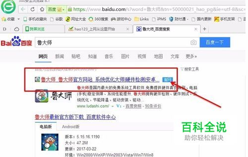 二、从网站上下载鲁大师并安装 可以通过搜狗搜索鲁大师的官网,从官网上下载并安装鲁大师软件。(如图所示操作)