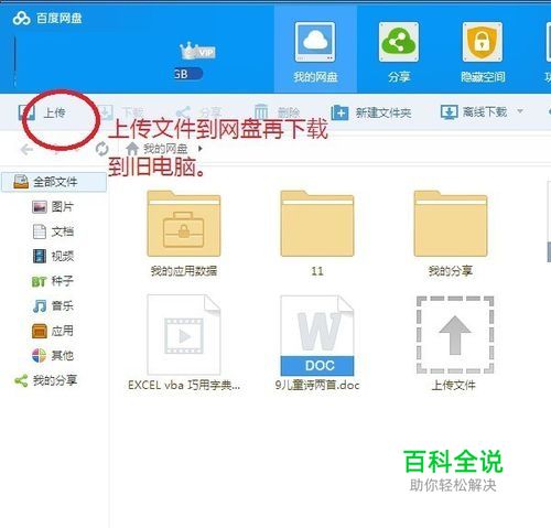 第二种方法:就是通过网盘,一些个人的网盘,容量只有10G左右,以后可能会更多。先把一部分上传到网盘,下载完成之后,又清空再上传旧电脑的资料。