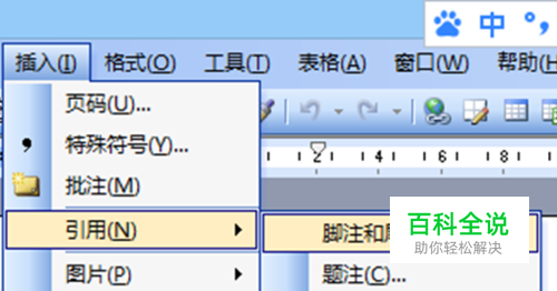 打开要添加脚注或者尾注的文档,把光标放到要添加脚注或者尾注的地方,然后点击“插入”,在下拉框里选择“引用——脚注尾注”。