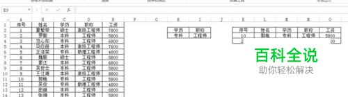 我们在表格空白地方将我们筛选的条件列举在旁边。第一个是学历为专科,第二个是职称为工程师。