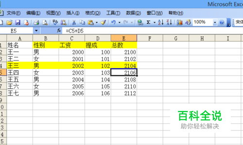我把王三-性别-男-工资-2002-提成-102-总数-2104分别复制到单独的一列里,正常的我们要一个个复制一个个粘贴。