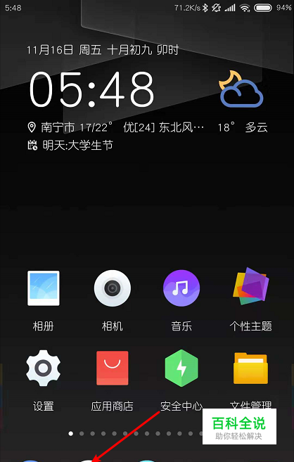 对于智能机,点击安全中心,点击设置上的齿轮。