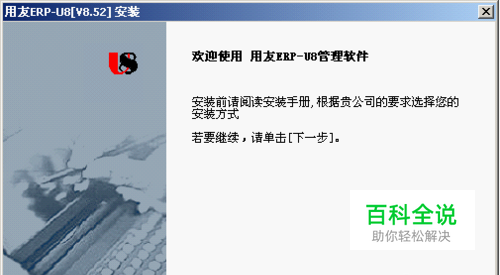 安好后就可以安装ERP-U8.52了。(基本是教学光盘里的内容) 1.运行安装盘下的Setup.exe 2.在安装欢迎界面中选择下一步