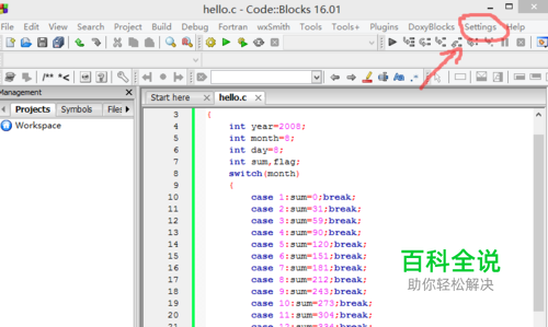 打开CodeBlocks,工具栏有个setting,鼠标移上去