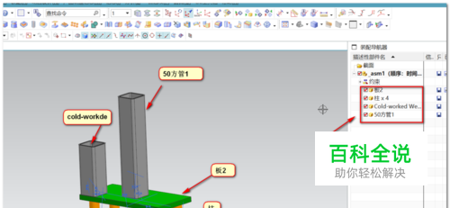 如图,这是一个装配文件。可以通过装配导航器看出,这个装配体有:五个部件组成。其中包括相同的方板和圆柱。 从装配文件夹中也可以看到,里面保存着其中的组件。如何将这些部件合并成一个部件呢?