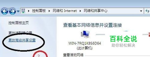 2.选中左侧“更改高级共享设置”