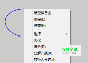 如果是在su中画的圆,点击圆弧,圆弧变为蓝色后,直接点击右键,会出现一个对话框