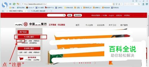 点击 “个人网上银行”下的“注册”,进入自助注册页面。
