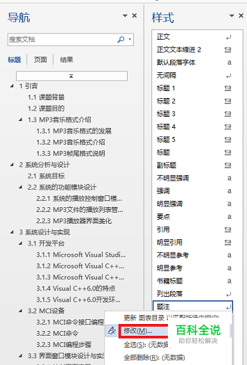 接下来,我们还要对图表目录的样式进行编辑之后才能插入图表目录,主要是,字体、字号、左对齐等。如图所示。
