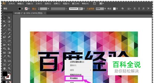 小伙伴们把特定的文字内容转换为轮廓之后,再在选中全部文字内容的前提下,直接右击鼠标,在出现的列表面板上选择”取消编组“的选项。