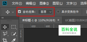 1.新建“自动选择图层”工具预设: 按V键先选中移动工具,然后在PS的左上角勾选“自动选择图层”,如下图