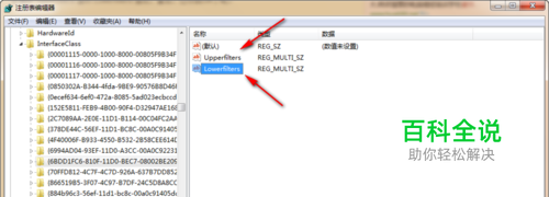 找到:HKEY_LOCAL_MACHINE\SYSTEM\CurrentControlSet\Control\Class\{6BDD1FC6-810F-11D0-BEC7-08002BE2092F} 中的Upperfilters项和 Lowerfilters项。