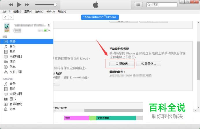 我们先将iPhone手机使用iTunes软件备份,在使用数据恢复软件恢复的过程中需要这一操作。