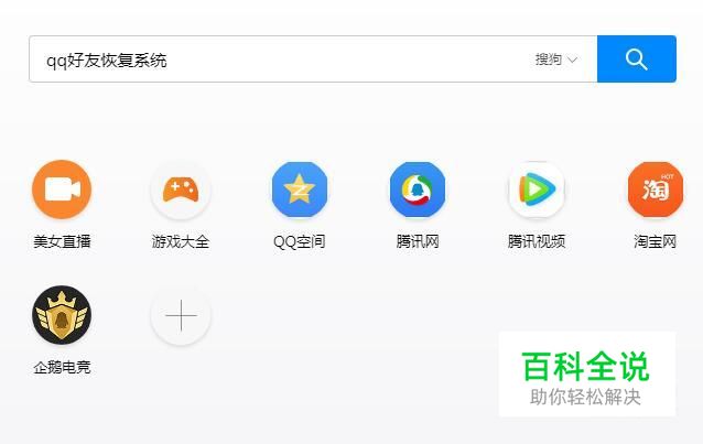 首先,在搜狗浏览器中输入QQ好友恢复系统并点击回车键,如下图所示。