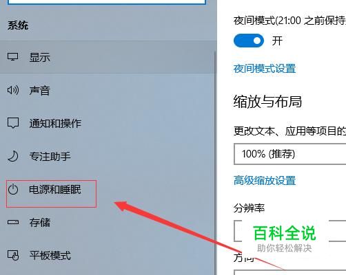 在系统设置页面,我们找到电源和睡眠,并点击进入。
