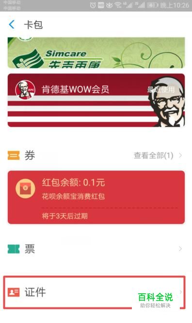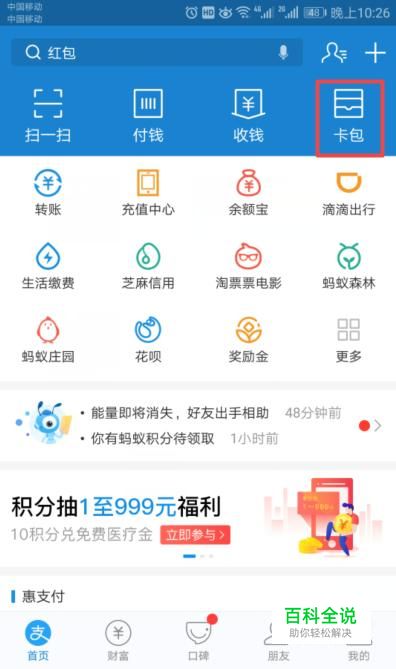 首先,我们进入我们的支付宝,然后我们点击卡包;