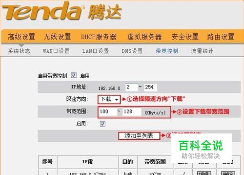 1.点击“带宽控制”设置上传带宽范围(以2M adsl拨号,2个人平均分配网速为例)