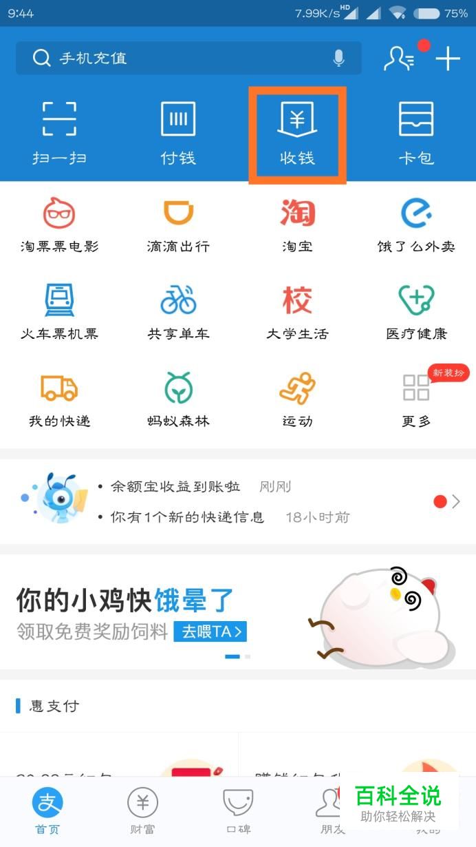 打开支付宝APP,点击最上方的“收钱码”。