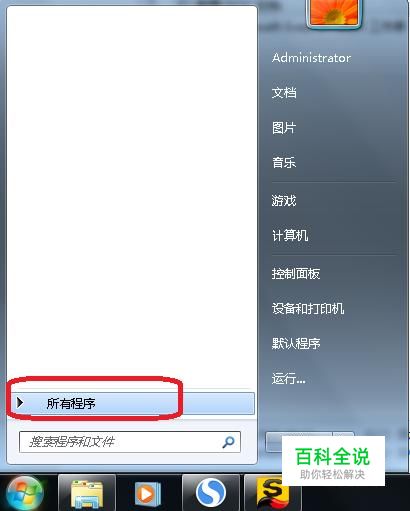 首先,我们点击开始菜单,如图所示,点击“所有程序”。