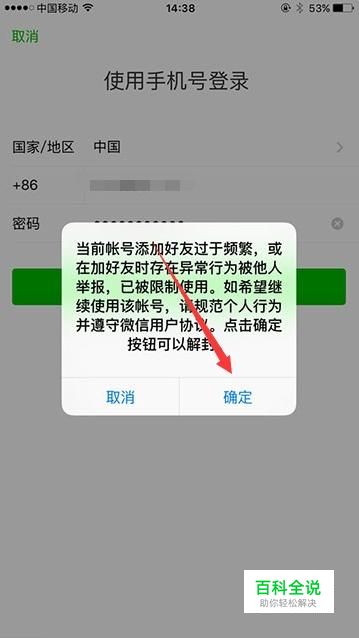 封号的情况有几种,一般是长度不等的时间内限制登录,或者永久封号,前者是今天我们介绍的情况,限制登录之后点击‘确定‘。