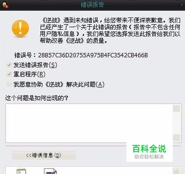 一旦逆战出现这种错误报告,玩家们不要慌,为什么会出现错误报告那么首先可能是你在游戏下载过程中有过暂停的动作,那么暂停后再次下载这种操作可能会造成逆战游戏文件的丢失,就如图中所示可见有两个文件错误。这个错误提示是系统找不到游戏路劲下的文件。是游戏客户端的问题,建议到官网用专门的下载器下载。 还有一种可能就是逆战的客户端文件可能和你的系统文件冲突,导致游戏无法选择到这个路劲,弹出这个错误报告。不嫌麻烦的话可以考虑换个系统。 那么关于逆战错误报告的解决方法很通俗直白的来理解就是重装游戏就可以极大的规避了错误发发生,当然如果你会找到报错文件去解决这个文件也是可行的,不过就想对来说比较复杂,所以重装游戏是最简单也是最直接的办法了。