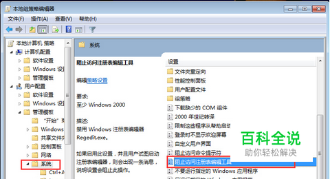接着可以点击“系统”后,并在右侧的列表中,直接找到“阻止访问注册表编辑器”。