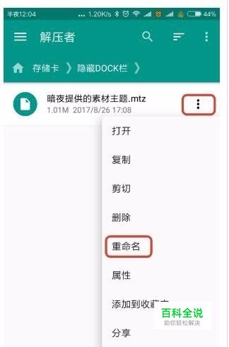 找到下载的主题,重命名把“xxxx.mtz”改成“xxxx.zip”我改成了隐藏DOCK栏.zip便于区分