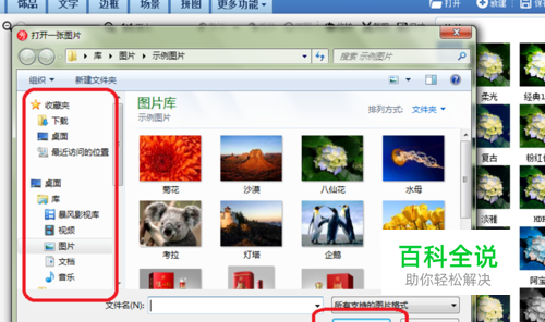 点击“打开”按键之后,会出现下图这样的对话框,从对话框的左边找到所要裁剪的图片的所在位置(就在存在哪个文件夹下);然后该文件夹下的所有图片都会出现在对话框的中间,找到所要裁剪的图片,鼠标左键单击该图片选中后,点击对话框右下角的“打开”按键。