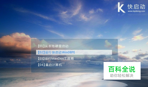 接着进入到快启动主菜单界面,按键盘向下方向键选择“【02】运行快启动win08pe”如下图所示: